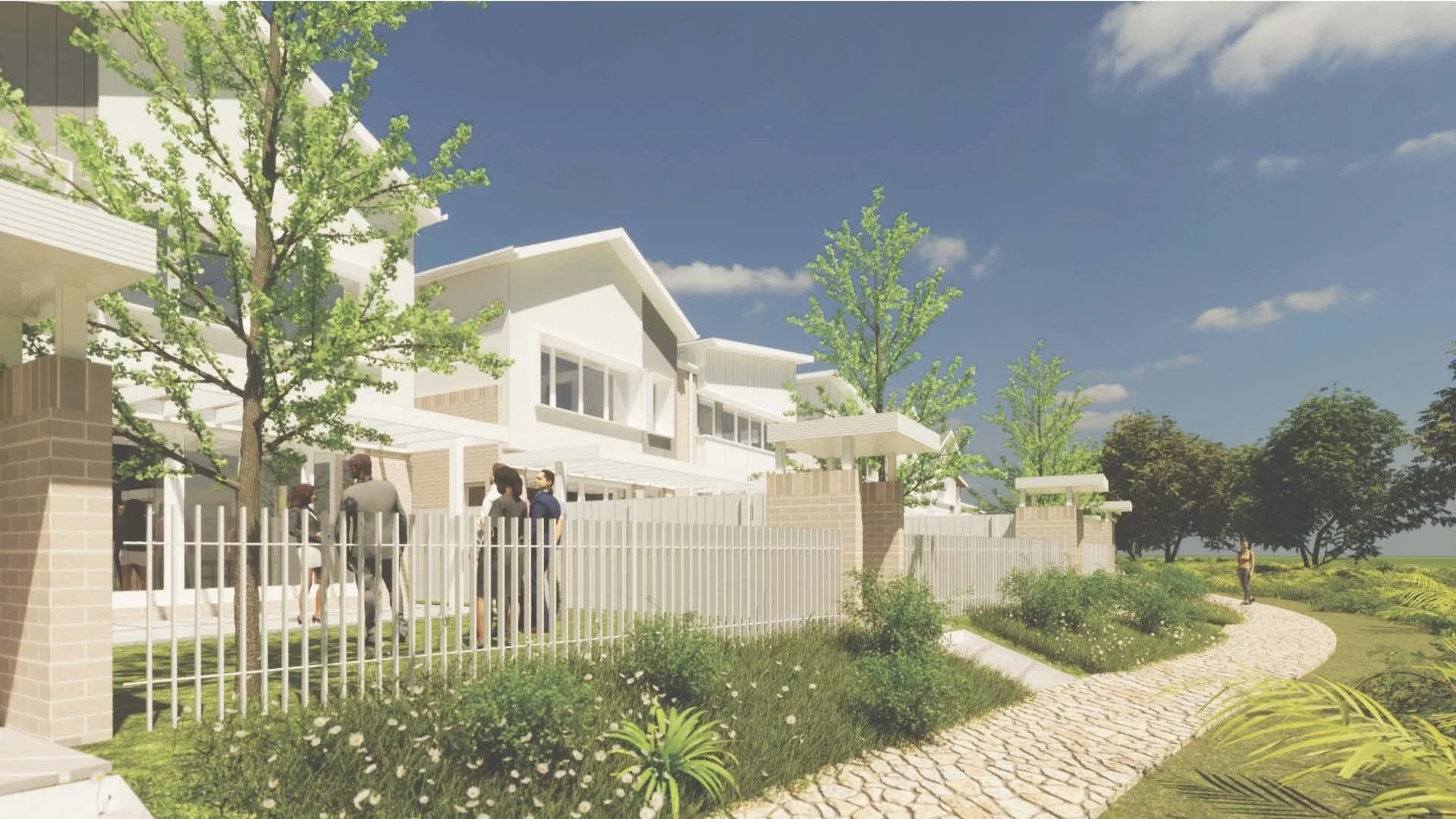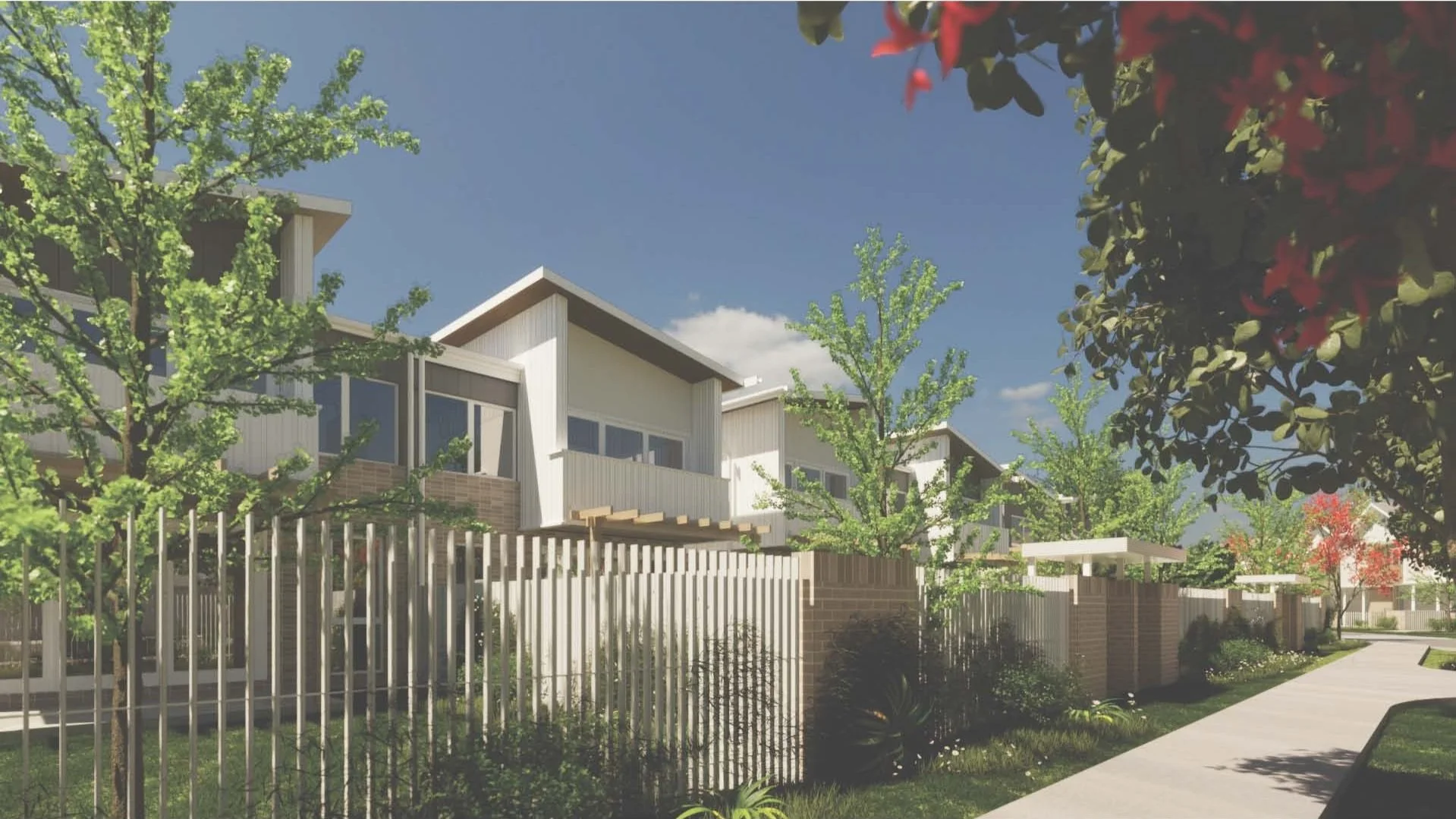 Sovereign Hills is a collection of 65 attached and detached dwellings located in Port Macquarie. The site is located adjacent natural bushland and within walking distance to a Regional College and local Town Centre. The Architecture draws inspiration from its coastal and bushland surrounds, but also responds to the adjacent Town Centre.